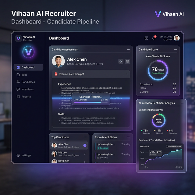Vihaan AI scans for skills, experience, and cultural fit with human-like precision.